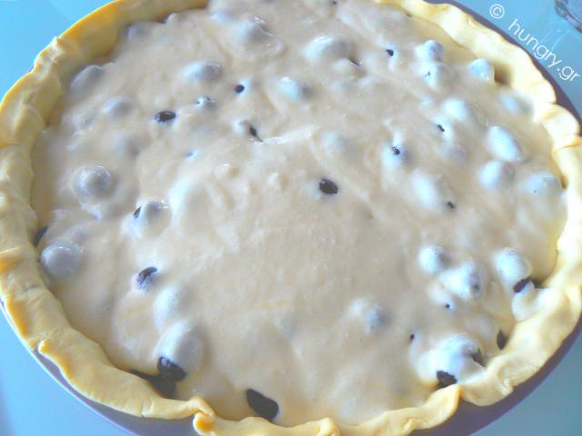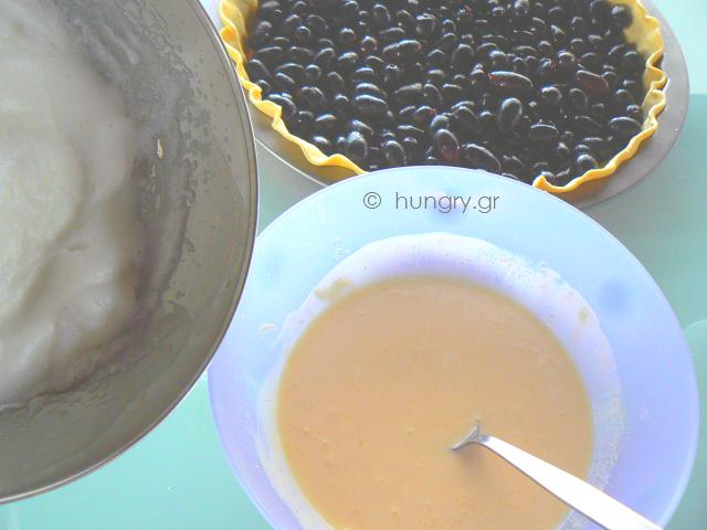 Pout the grapes in the tart pan and pour over them the cream mixture. |