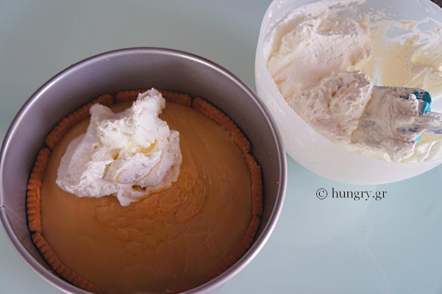 Spread the whipped cream with a spatula or the back of a spoon over the caramel. |