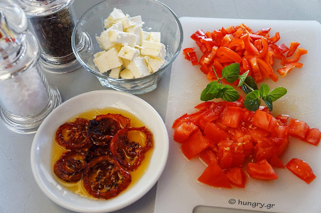The fresh and roasted tomatoes and feta cheese give, other than essential nutrients, extra flavor. The basil perfumes it summerwise!