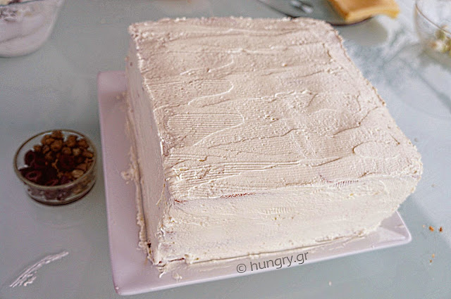 Cover all with final layer the last 4 bread slices. With the mixture of cream cheese, we kept aside, brush well the sides of the cake… |