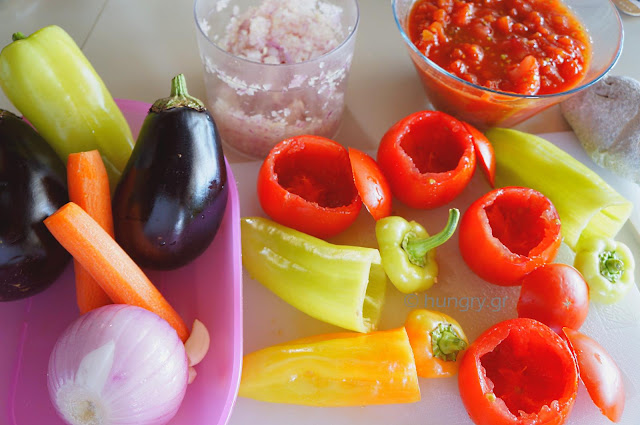 Greek summer is combined with lots of fresh aromatic vegetables as a main dish, salad or appetizer at our table, but also filled in various ways. It is the time when we find them abundant and in their best time! But it is also inconvenient to turn on our home oven at high temperatures. That's why today I propose to make stuffed vegetables in the pot. Like they make and make by housewifes due to missing oven or for faster and more economic process. They are done in half time from the oven stuffed vegetables.